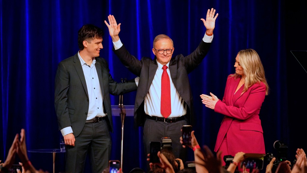 ▲阿爾巴尼斯慶祝連任。 美聯社