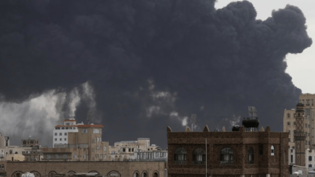 以色列空襲也門薩那胡塞武裝基礎設施后,濃煙滾滾。