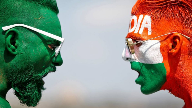 ▲2021年10月23日,兩名男子在臉上涂鴉印度和巴基斯坦國旗。路透社