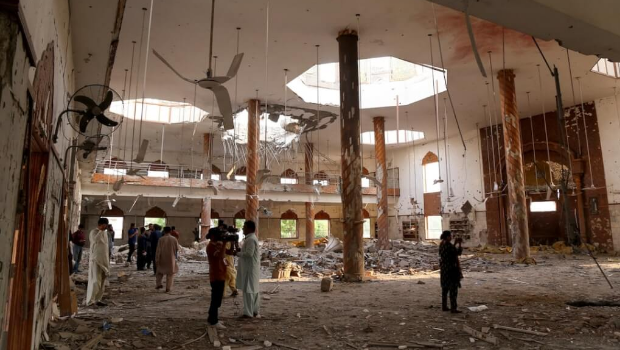 巴基斯坦巴哈瓦爾布爾一棟建筑物7日遭印度空襲,內部布滿殘骸。