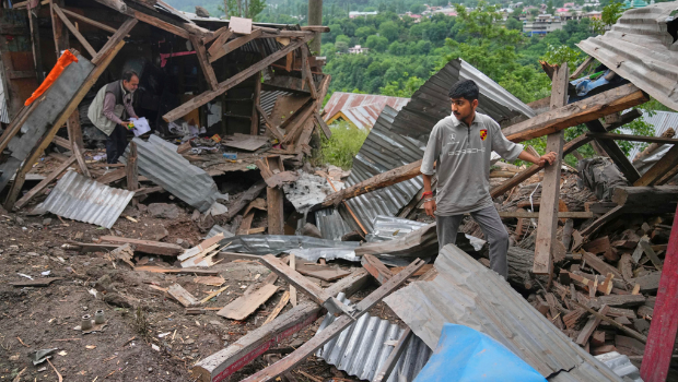 ▲印度為克什米爾“巴哈甘”(Pahalgam)殺戮事件報復巴基斯坦,發動空襲后,伊斯蘭馬巴德8日也以牙還牙,徹夜攻擊新德里控制的克什米爾區,圖為民眾9日眼看自己的商店被夷為平地。(美聯社)