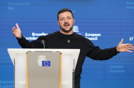 ▲2024年10月17日,在比利時布魯塞爾,烏克蘭總統澤連斯基在歐盟峰會上參加新聞發布會。新華社