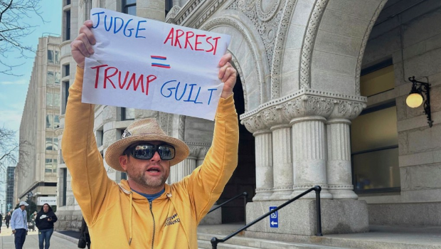 民眾在密爾瓦基縣法院外示威,抗議法官杜根(Hannah Dugan)被捕。 美聯社