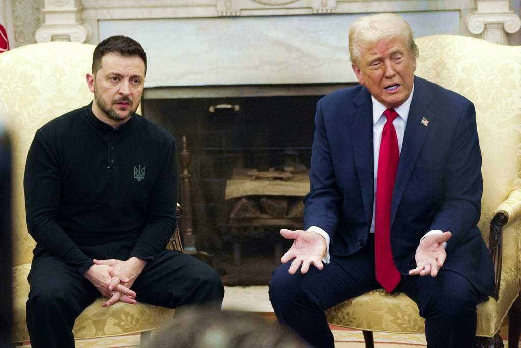▲美國總統特朗普19日與烏克蘭總統澤連斯基2度通話,澤連斯基在通話中要求特朗普,不要在烏克蘭沒有參與的情況下,擅自做出與烏克蘭有關的決定。畫面為特朗普2月28日在白宮與澤連斯基會談。(美聯社)