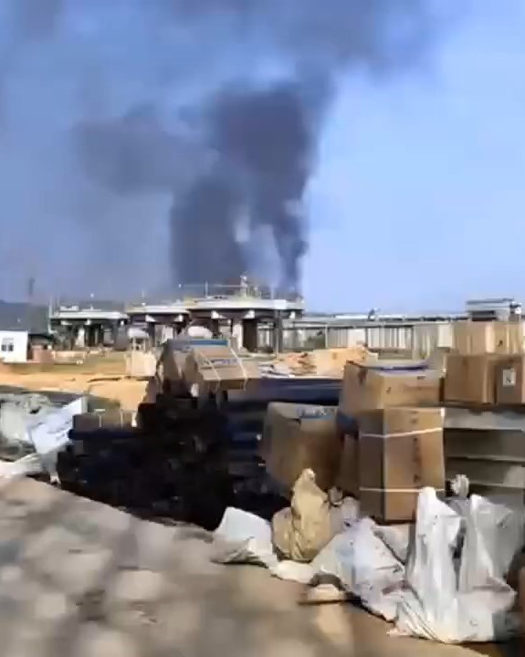 ▲直至昨晚紡織廠仍然冒出大量濃煙。微博@百姓關注