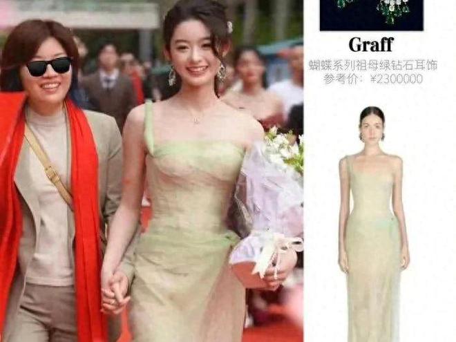17歲的黃楊鈿甜配戴身價逾200萬人民幣的翡翠耳環,是向母親借來。 微博@黃楊鈿甜