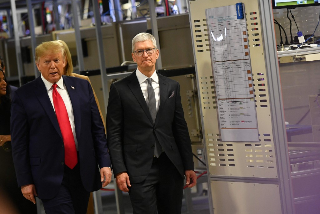 特朗普希望庫克(右)能在美國生產和組裝iPhone。
