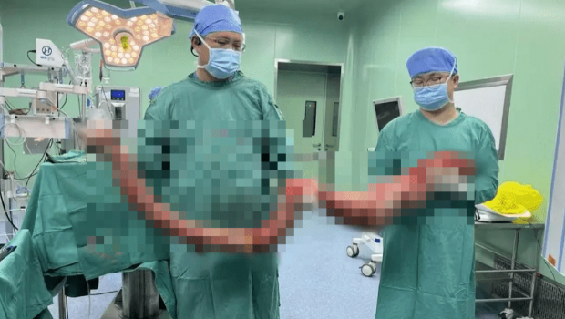 江蘇男便秘長達4個月,醫生取出2米長10多公斤“巨蟒”