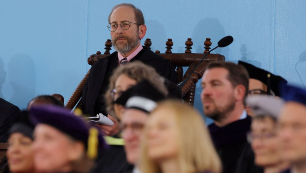 ▲哈佛現任校長加伯(Alan M. Garber)雖然態度溫和,但面對特朗普政府施壓立場強硬,圖為他出席畢業典禮的資料照。(路透)