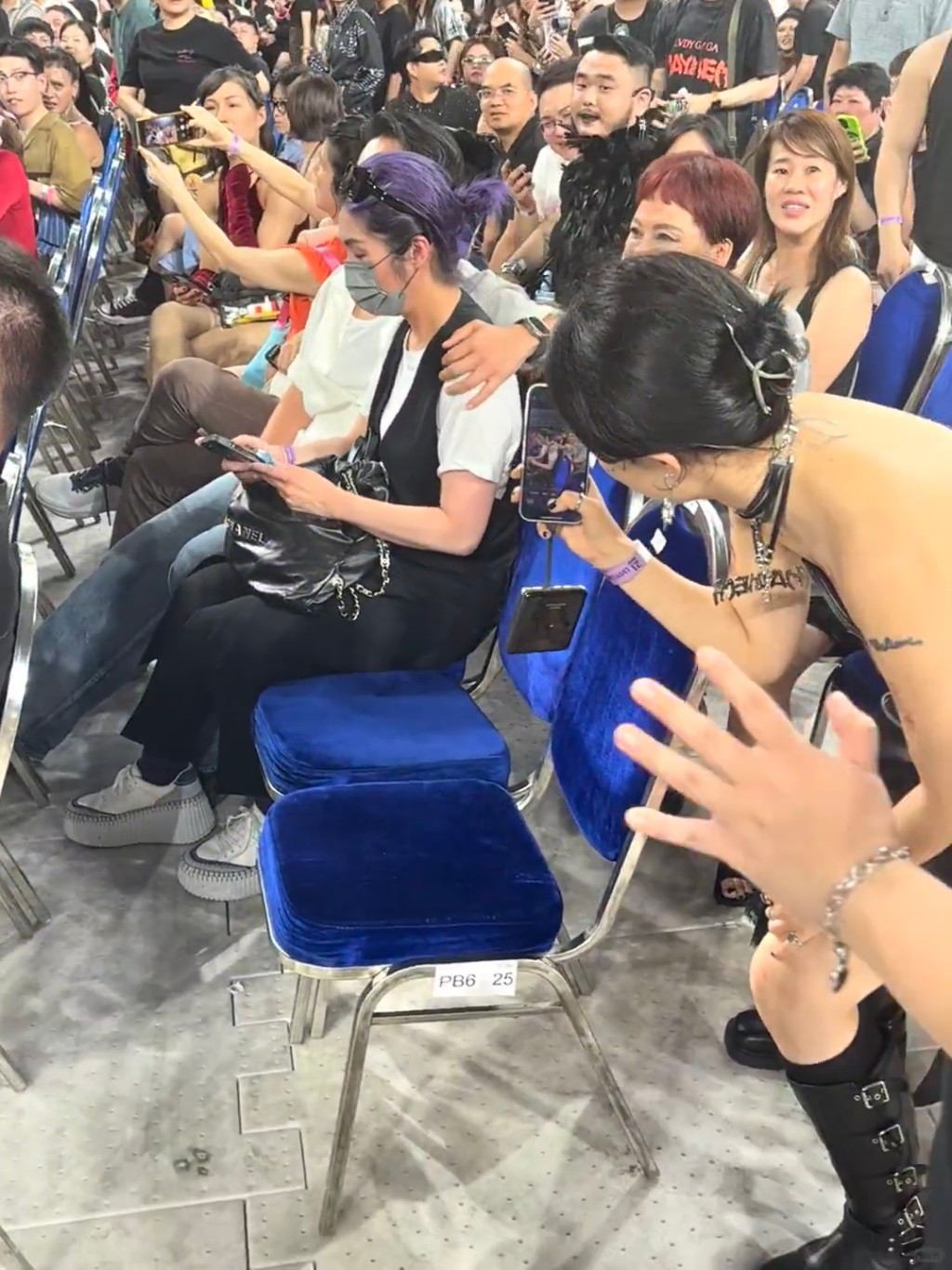 ▲有網民拍到疑似丁子高與楊千嬅站在場邊等待開場的影片。