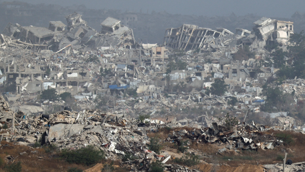 ▲2025年5月27日,從以色列看北加沙的破壞。(路透社)