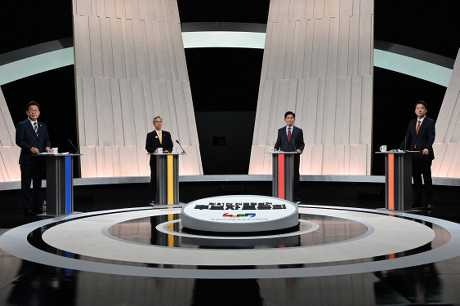 韓總統大選4大候選人李在明、權英國、金文洙、李俊錫(右),上周二在首爾MBC電視臺準備進行電視辯論。