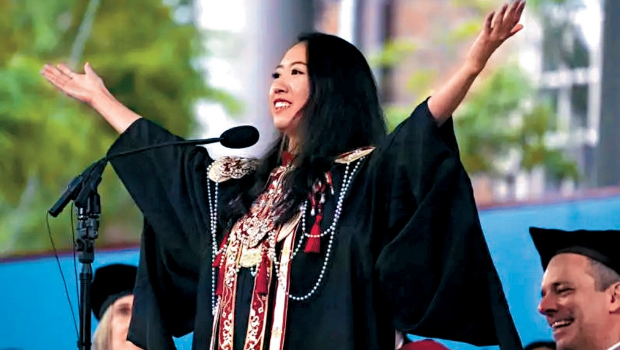 中國留學生蔣雨融在哈佛大學畢業禮上致辭。