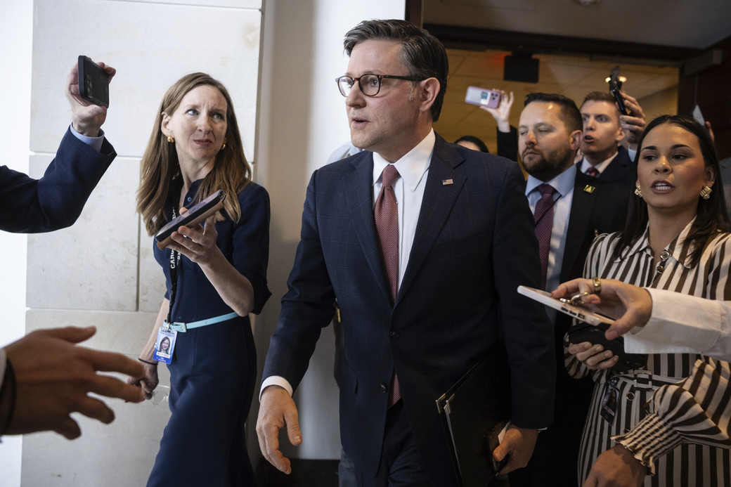邁克·約翰遜當地時間4日在美國國會大廈回答記者提問。圖源:美媒