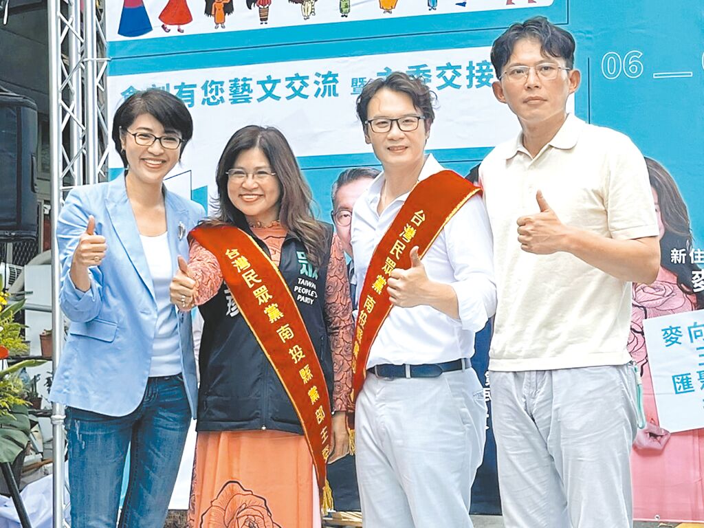 ▲民眾黨南投縣黨部主委7日交接,南投縣長許淑華(左一)出席與民眾黨主席黃國昌(右一)同框。(中時新聞網)