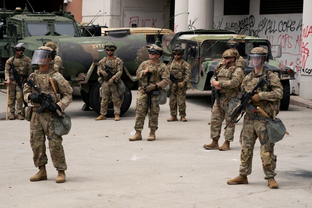 美國移民與海關執法局等聯邦機構6日和7日出動大批執法人員,在洛杉磯縣多地展開針對非法移民的搜捕行動,連續兩日與當地社區居民發生嚴重沖突。 7日,美國總統特朗普簽署總統備忘錄,在加州州長紐森沒有請求支援的情況下,宣布向洛杉磯地區派駐2,000名國民警衛隊人員。美國軍方8日說,當天共有300名國民警衛隊人員依指令進駐洛杉磯地區。