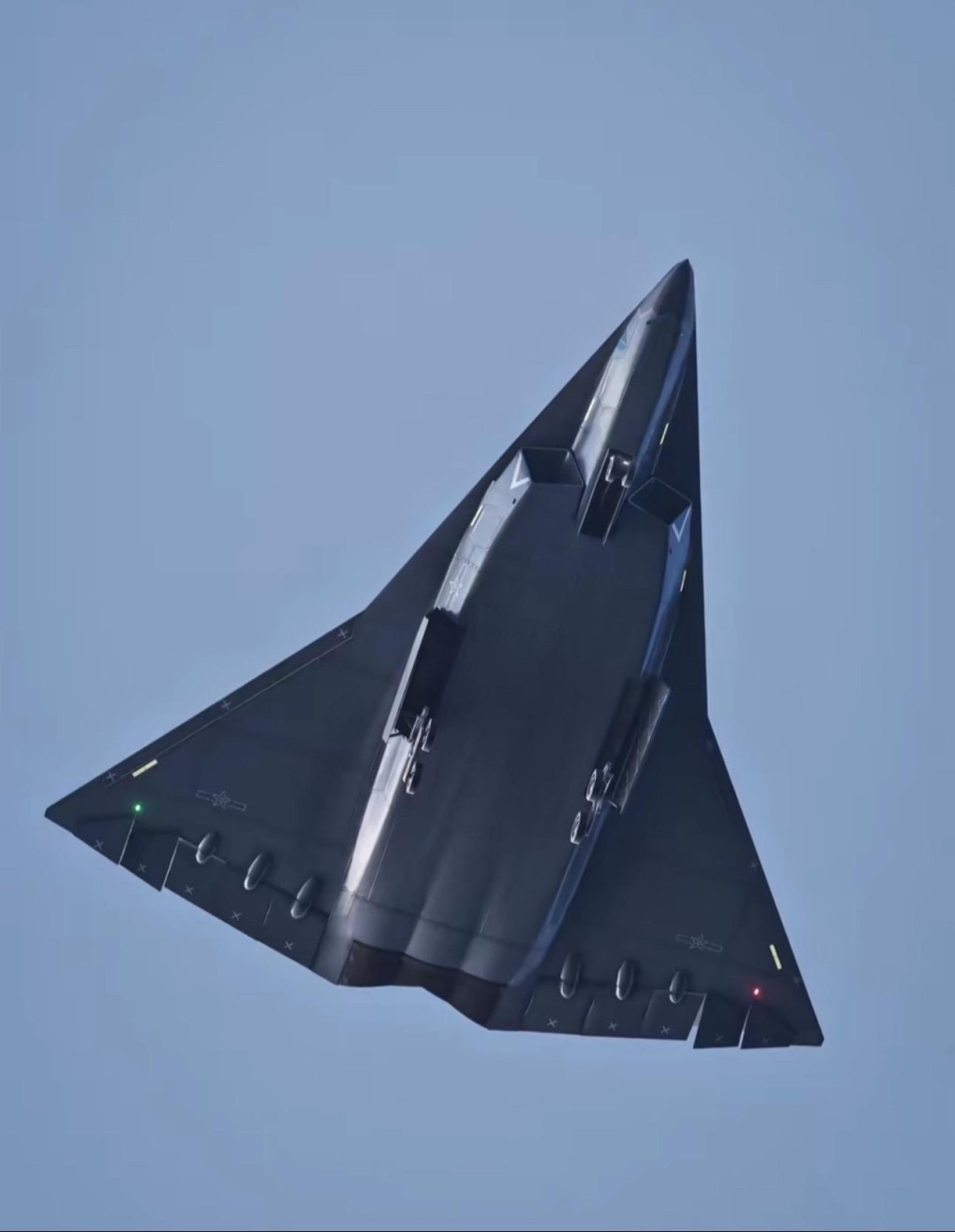 解放軍最新的第六代隱形戰機殲-36(型號未獲官方確認)再有新照片流出,其靜態停泊于基地的正面照,清楚看到其機背進氣口和并排雙座艙。