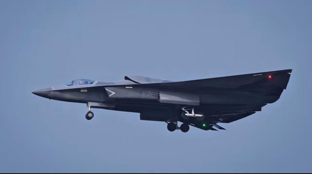 這張首次曝光的殲-36靜態正面照,可見其并列雙座艙設計,中間疑有支撐柱。機背中央進氣口亦顯得明顯及巨大,而進氣口后方向上打開的板子,則疑是殲-36其中一塊減速板。