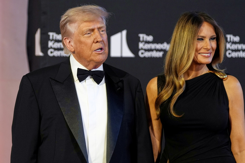 畫面為特朗普11日晚間與美國第一夫人梅拉尼婭抵達華府肯尼迪中心,準備觀賞《悲慘世界》演出。美聯社