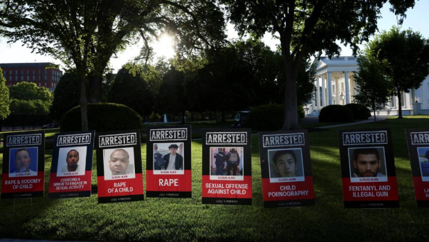 ▲4月28日,美國華盛頓白宮外張貼的被捕非法移民海報。路透社