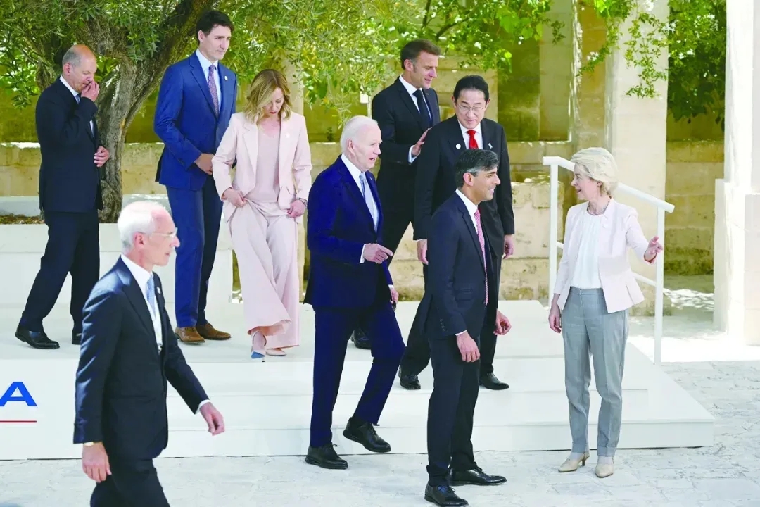 ▲七國集團(G7)峰會13日在意大利南部普利亞大區開幕。圖為G7國家領導人和歐盟領導人等合影后離開。圖片來源:環球網轉自法新社
