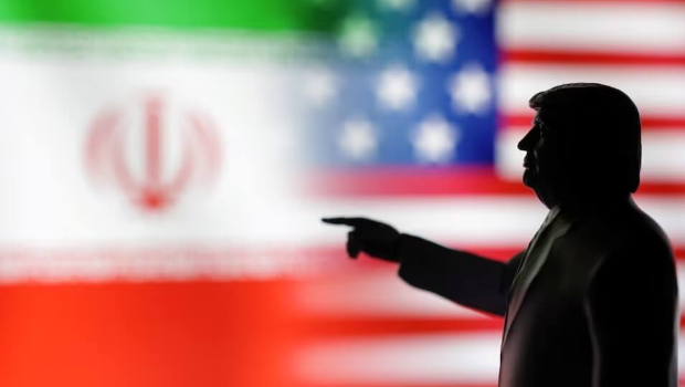 ▲伊朗國旗、美國國旗,以及美國總統特朗普3D列印模型。(路透社)