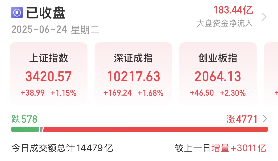 6月24日,A股三大指數集體大漲,而滬指再度站上3400點。