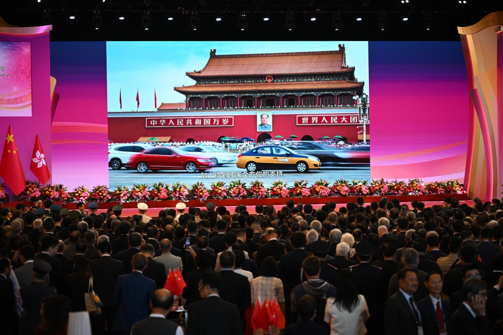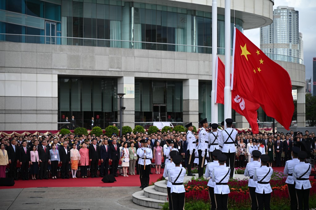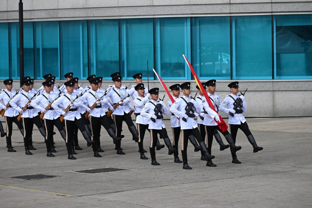 特首李家超伉儷于約早上7時52分進場。警察銀樂隊在現場奏樂,護旗方隊及儀仗隊以中式步操進場,飛行服務隊多架直升機分別懸掛國旗及區旗,飛越維港上空,消防船及水警輪則在會展對開海面噴水花致敬。與往年一樣,升旗儀式不設公眾觀禮區。