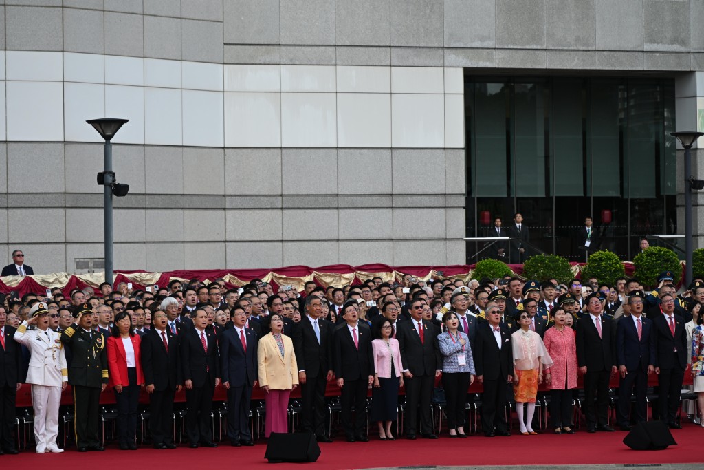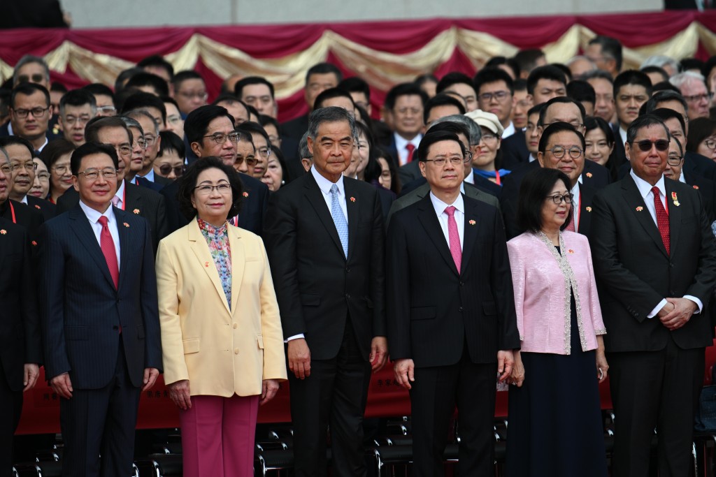 ▲特首李家超(前排右三)出席升旗儀式。蘇正謙攝