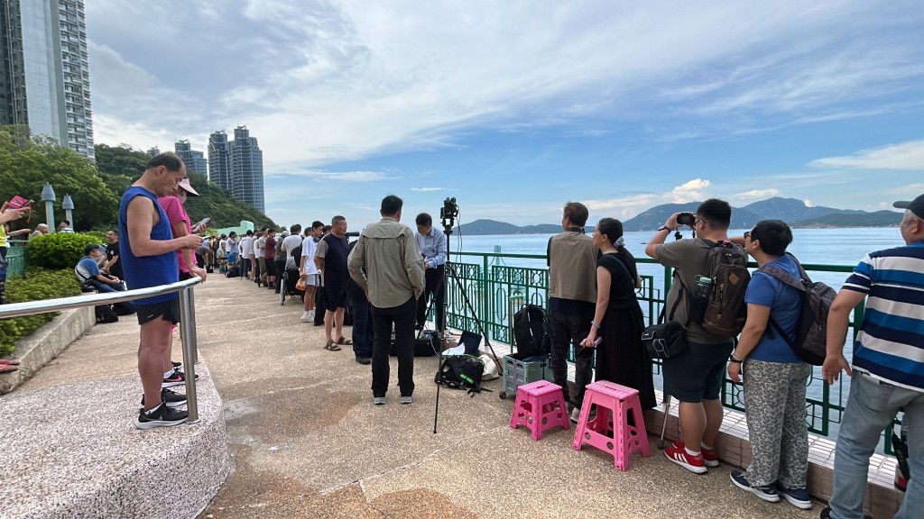 ▲大批市民在海怡半島海濱長堤等候山東艦抵港。