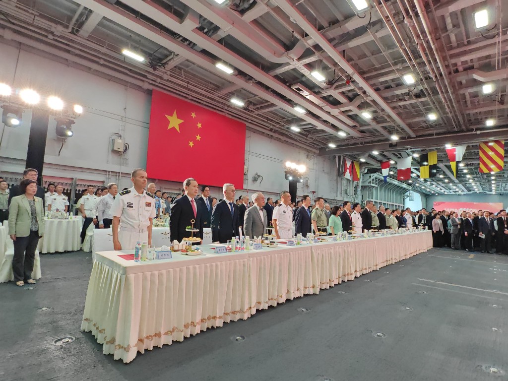 【18:00】山東艦航母編隊舉行甲板招待會,行政長官李家超、全國政協副主席梁振英、前特首曾蔭權、林鄭月娥、中聯辦主任周霽、國安公署署長董經緯等均有出席。