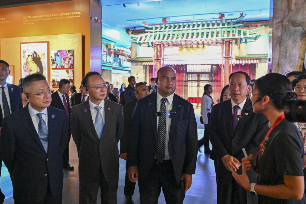 阿迪昂(左三)參訪位于廣東江門的中國僑都華僑華人博物館。 中新社