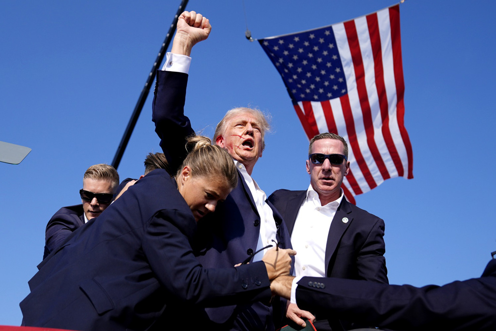 美聯社指出,相較于許多重大事件生還者傾向遺忘這段慘痛記憶,特朗普身邊反而圍繞著各種能紀念這次事件的紀念品,例如他用描繪自己耳朵中彈后、站起來奮力揮拳喊“戰斗、戰斗、戰斗”的藝術品,裝飾白宮及高爾夫球俱樂部,白宮橢圓形辦公室一張辦公桌上,就有一尊描繪這個場景的青銅雕塑; 他也經常重述當時自己是如何在千鈞一發之際轉頭看圖表,稱圖表救了他一命。