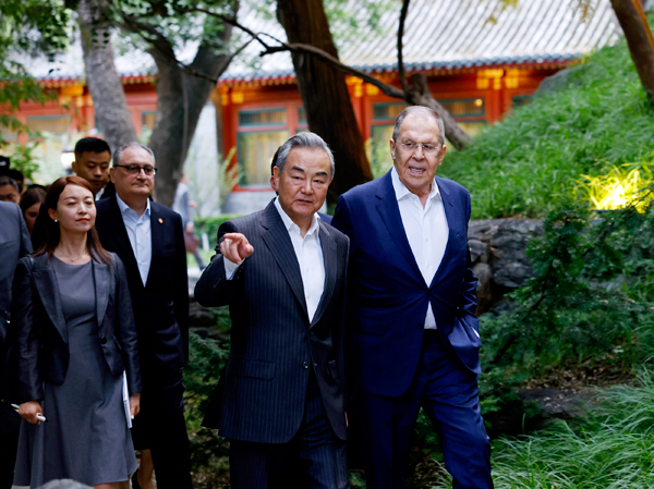 中共中央政治局委員、外交部長王毅7月13日在北京會見俄羅斯外長拉夫羅夫。王毅表示歡迎拉夫羅夫來華出席上海合作組織成員國外長理事會會議,表示中俄關系是當今世界最穩定、最成熟、最富有戰略價值的一組大國關系。