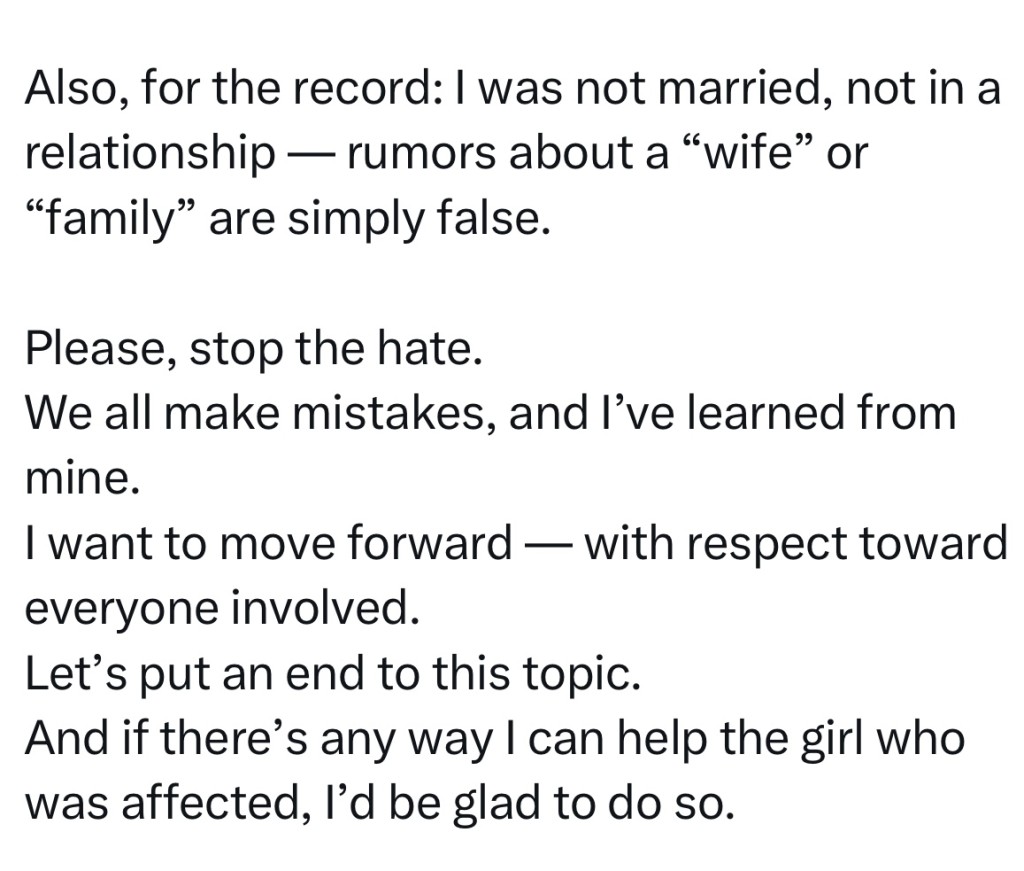 ▲宙斯發文辯稱,視頻無露骨內容,自己單身無子女。 X@ZenusCSGO