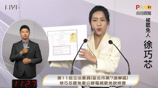▲臺北市選委會18日進行公辦電視罷免說明會,下午由徐巧芯與曹興誠各進行二輪發表。(擷取自臺北市選委會YT頻道)