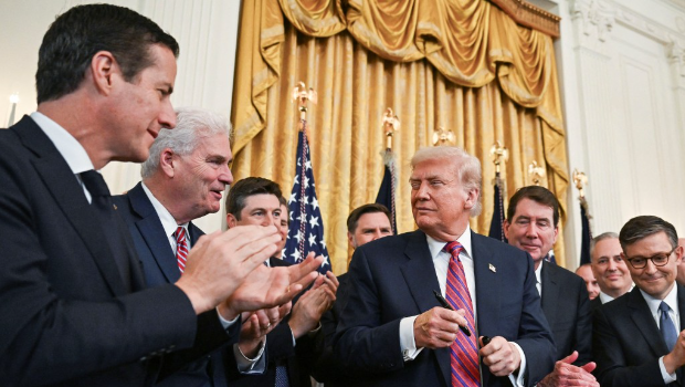 ▲特朗普簽署穩定幣監管法案后,一眾高官鼓掌。路透社