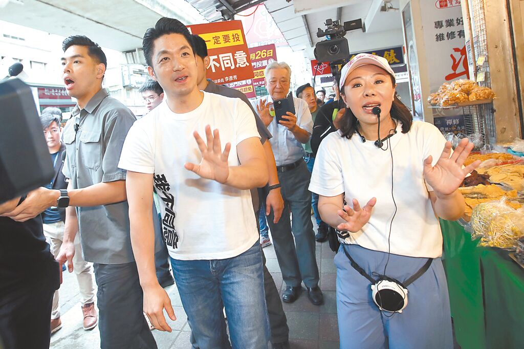 ▲蔣萬安昨陪同藍委王鴻薇、涂權吉反罷免掃街。