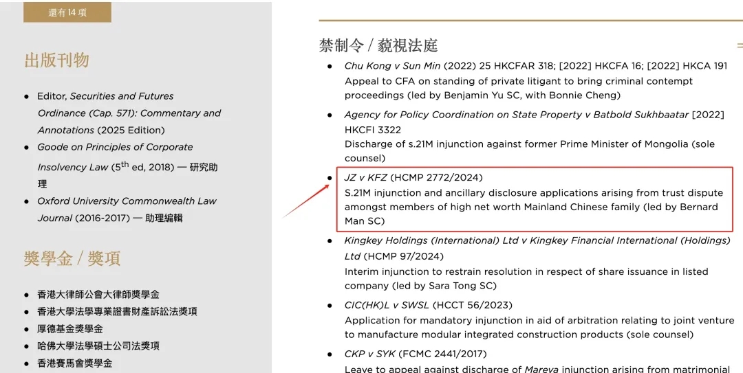 據每日經濟新聞此前報道,記者查詢獲悉,香港一家律所的律師在官網展示了其代理上述案件的信息,他如是表述這宗案件:“因中國內地高凈值家庭成員之間的信托糾紛,而產生的禁令及附帶披露申請?!逼浒讣幪柵c記者從香港高等法院獲取的案件編號一致。