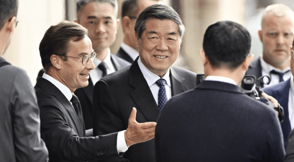 ▲經過一日半的會議,中美第三輪經貿會談結束。圖為瑞典總理克里斯特松迎接中國國務院副總理何立峰。美聯社