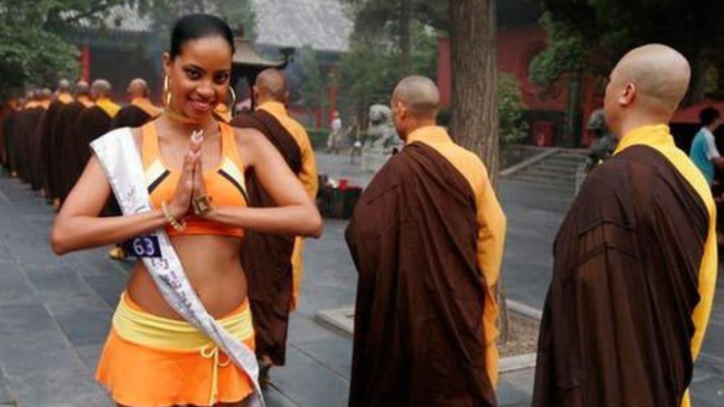 ▲2007年,國際旅游小姐穿上清涼衣余參觀白馬寺,成為國內話題。人民網