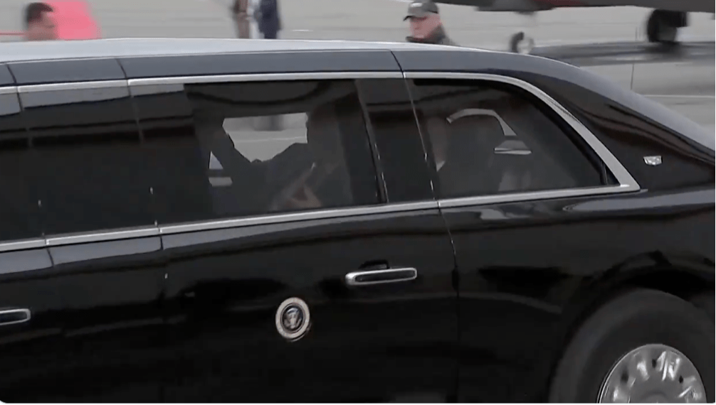 ▲特朗普和普京共同走進美國總統專用“野獸”防彈轎車,然后一同前往會談地點。影片截圖