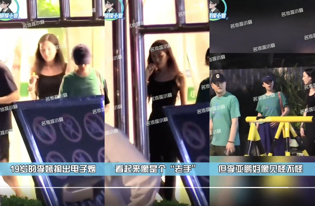 李嫣抽電子煙,李亞鵬在一旁。