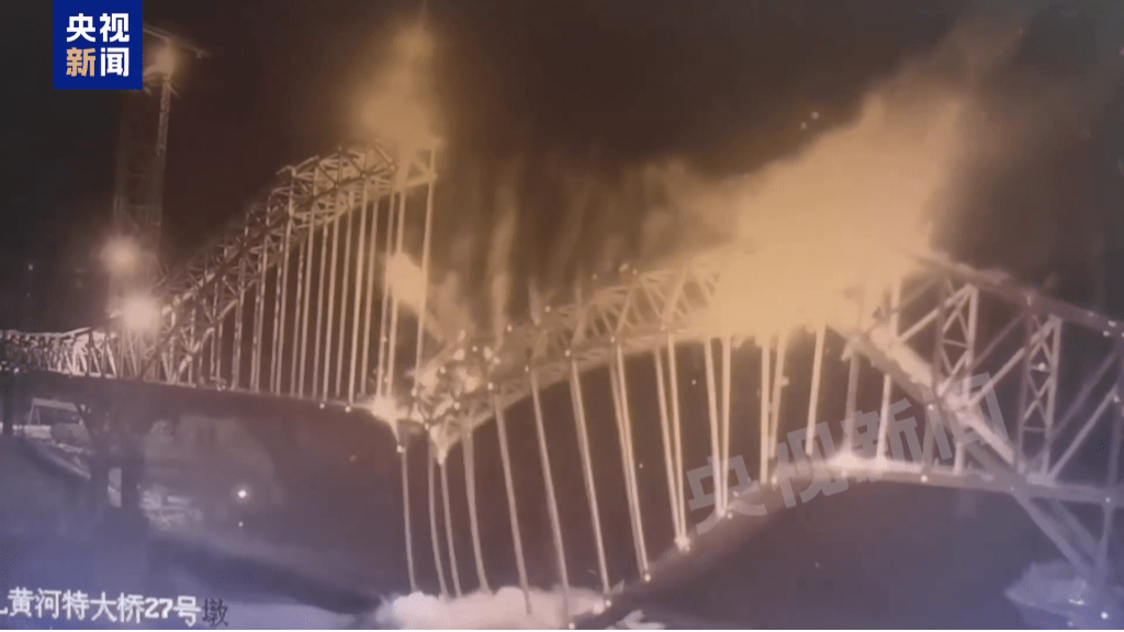 央視新聞曝光尖扎黃河特大橋事故發生一刻的畫面。