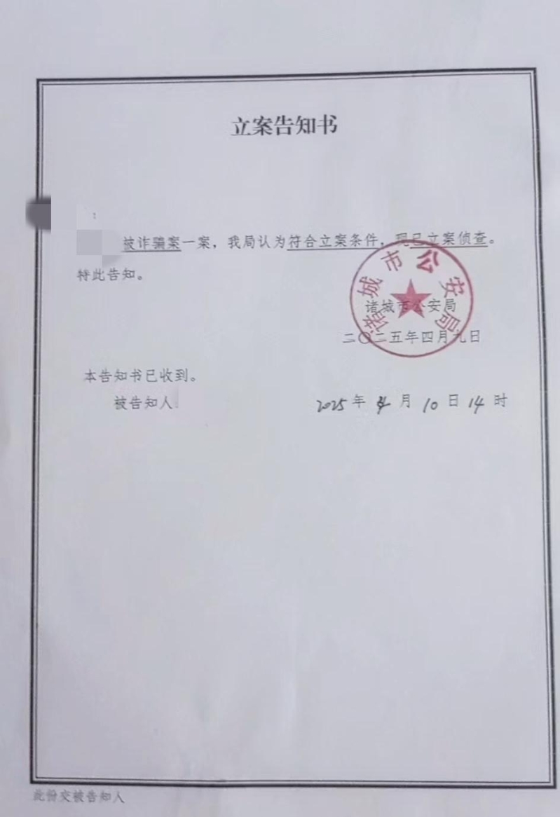 李先生表示,4月初,他和妻子帶著女兒的骨灰和遺物回國。4月9日,山東省諸城市公安局向小文家屬出具“立案告知書”,稱小文被詐騙一案,符合立案條件,現已立案偵查。