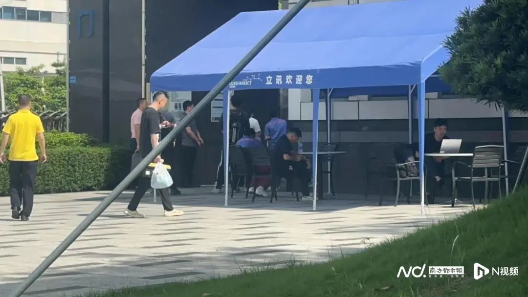 ▲立訊工廠門口常有疑似供應商聚集。受訪者提供