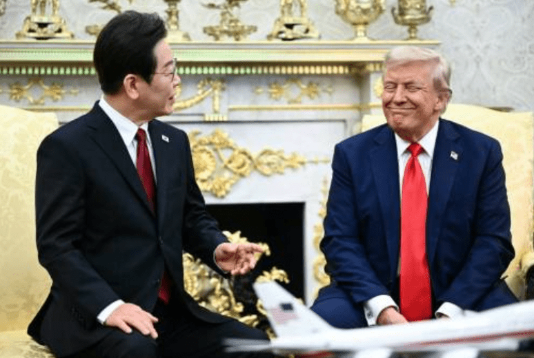 ▲美國總統特朗普在與韓國總統李在明。法新社