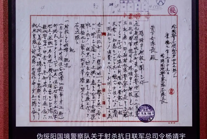負責這份檔案翻譯的黑龍江省檔案館宣傳教育文化處一級主任科員趙倩說,這份標“秘”的內部通報是日偽軍警用來炫耀其所謂“戰果”的?!斑@暴露了日軍殘暴侵略的本性,也印證了楊靖宇將軍在東北抗聯和民眾心中的崇高地位。他的存在令侵略者膽寒?!?/p>