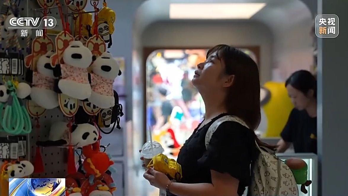 總臺央視記者 張琪:我現在是在成都寬窄巷子一家店里,我手里這個盲盒是一個黑色的小貓玩偶,其實它不僅僅是個盲盒,還是手機的掛鏈,只要買旁邊的手機就會送盲盒掛鏈。我現在不是在文創店里,而是在一家手機店里。