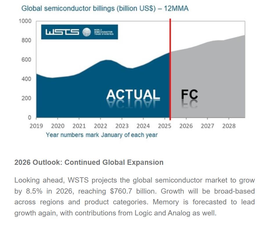 展望未來趨勢,從華爾街金融巨頭高盛以及世界半導體貿易統計組織(WSTS)等權威機構的芯片市場研究報告來看,在史無前例的這輪全球AI投資熱潮帶動之下,芯片股從長期投資角度來看,仍有可能將是美股市場表現最亮眼的科技板塊之一。